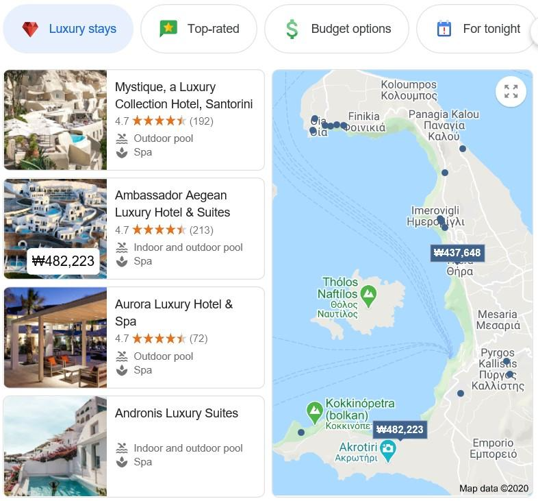 그럼 모든 것을 알고 있는 Google 神을 통해 산토리니의 럭셔리 호텔을 검색해 보겠습니다.
