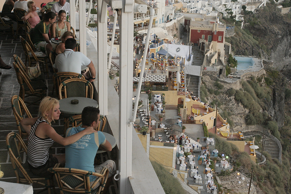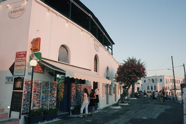 산토리니 각지로 가는 버스가 피라마을을 통해서 가기 때문에 상점,레스토랑,Bar가