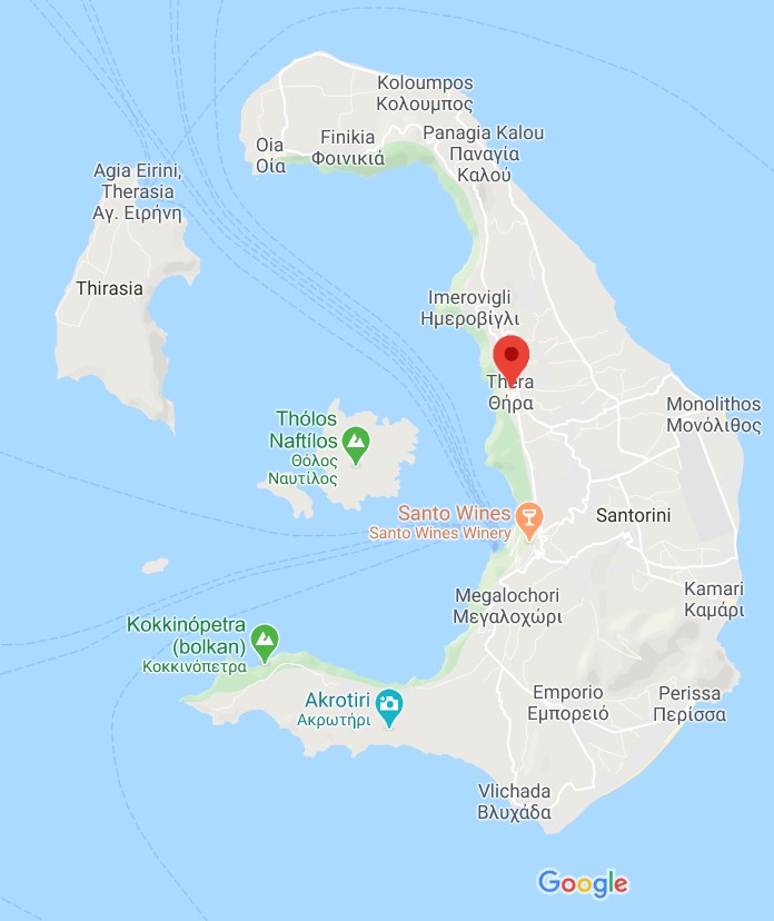 지도에서 보시다시피 피라마을은 산토리니의 중심에 있어 교통의 중심 입니다.
